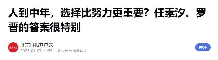 参考资料:北京日报《人到中年,选择比努力更重要?任素汐、罗晋的答案很特别》